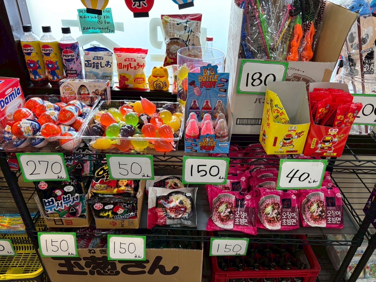 今週の今週の駄菓子屋は夏休みも終わり子供達の来店もめっきり減りました しかし子供たちが来なくなった事によって実は大人の来店が多い事に気づきました 1人で来られる方も居ればカップルで来店される方も居ます お目当てのお菓子が食べたくて入荷するのを待ちきれず毎日確認のためにご来店されるおじいさんもいらっしゃいます それと子供にお土産として買って行かれるお父さんも居ました。 やはり駄菓子屋は何歳になっても楽しい場所なんだなぁ~と思い これからも来店されるお客様を笑顔にして今まで以上に駄菓子屋えびすを好きになってもらうため頑張っていきます 今週は喫茶店の限定メニューでラーメンが販売されました 味は味噌と醤油(実は塩もあったみたいです) 喫茶店でラーメンは意外でしたが食べるととても美味しくチャーシューも食べ応えがありました! 普段メニューに無いのですが食べられた方も美味しいと言ってくださいました 限定なので今はありませんがもしかしたらまた出すかもしれないので今からワクワクしています