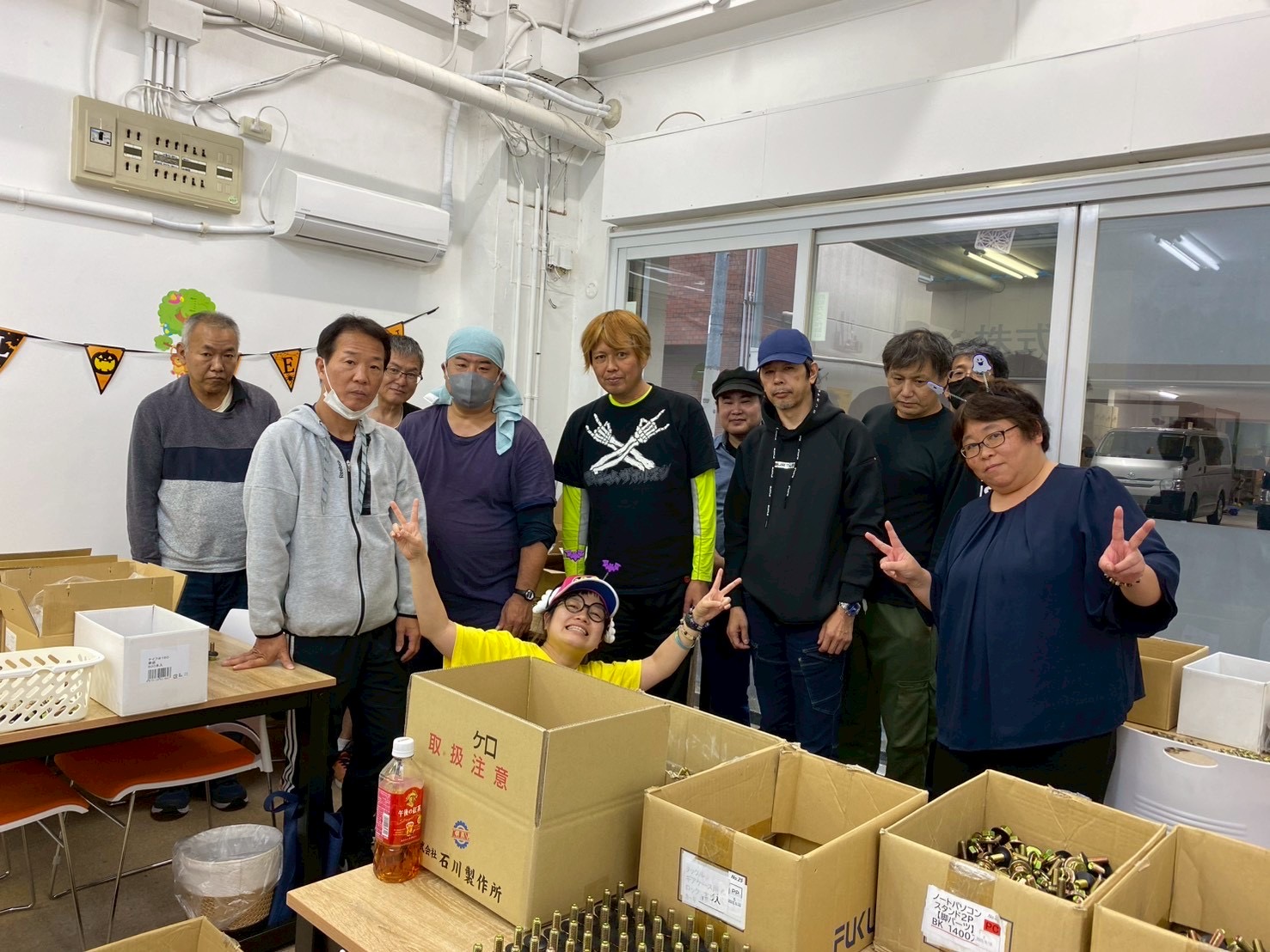 えびす事業所 えびす事業所10/25~10/31 成果報告 今週のえびす事業所の作業はFreelife様の新しい作業が始まりました。 今回の作業一言で言うならばとにかく「硬い」です 2つの部品を組み立てるだけなのですがそれをはめるのが硬くて皆さんがそれをはめる音が事業所内で響きわたっていました。 しかしえびす事業所の利用者様はコツを掴むのが早く この作業はあっという間に終わってしまいました💦 そしてまた新たな作業を始めたのですが今度はとにかく「重い」です!! 作業自体は簡単なのですが箱詰めした職員も持つ時に気合いを入れないといけないぐらい重いです 利用者様が出来た製品を持ってきてくださる時に 「これはいい筋トレになる」と仰っていました! それを聞いた職員は確かにそう考えると重くない事に気付き最初の頃に比べると不思議と軽く感じました。 今回の作業は数がかなりあるので利用者様と職員気合いを入れて頑張っていきます!! 10月31日この日は利用者様が待ちに待ったえびす事業所ハロウィンパーティーを開催しました!! 皆さんに1ヶ月前から告知し、皆さんが食べたいものを等をリサーチし当日皆さんに満足していただく為に職員も準備をし無事開催する事が出来ました!! 皆さん普段は作業に集中しているのであまり喋らないのですがこの日は皆さんわいわい、ガヤガヤして楽しそうで職員も嬉しくなり、準備を頑張って良かったと思いました。 在宅の方も来て頂き楽しんでいただき最後にみなさんで写真を撮りました!