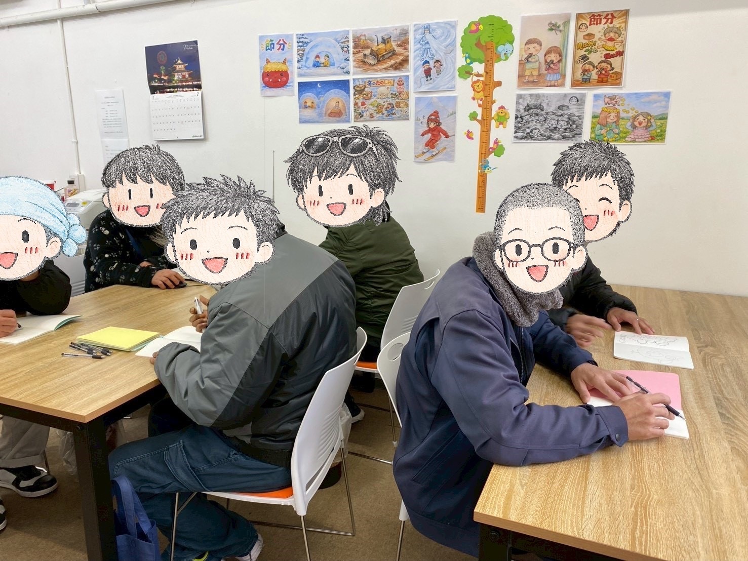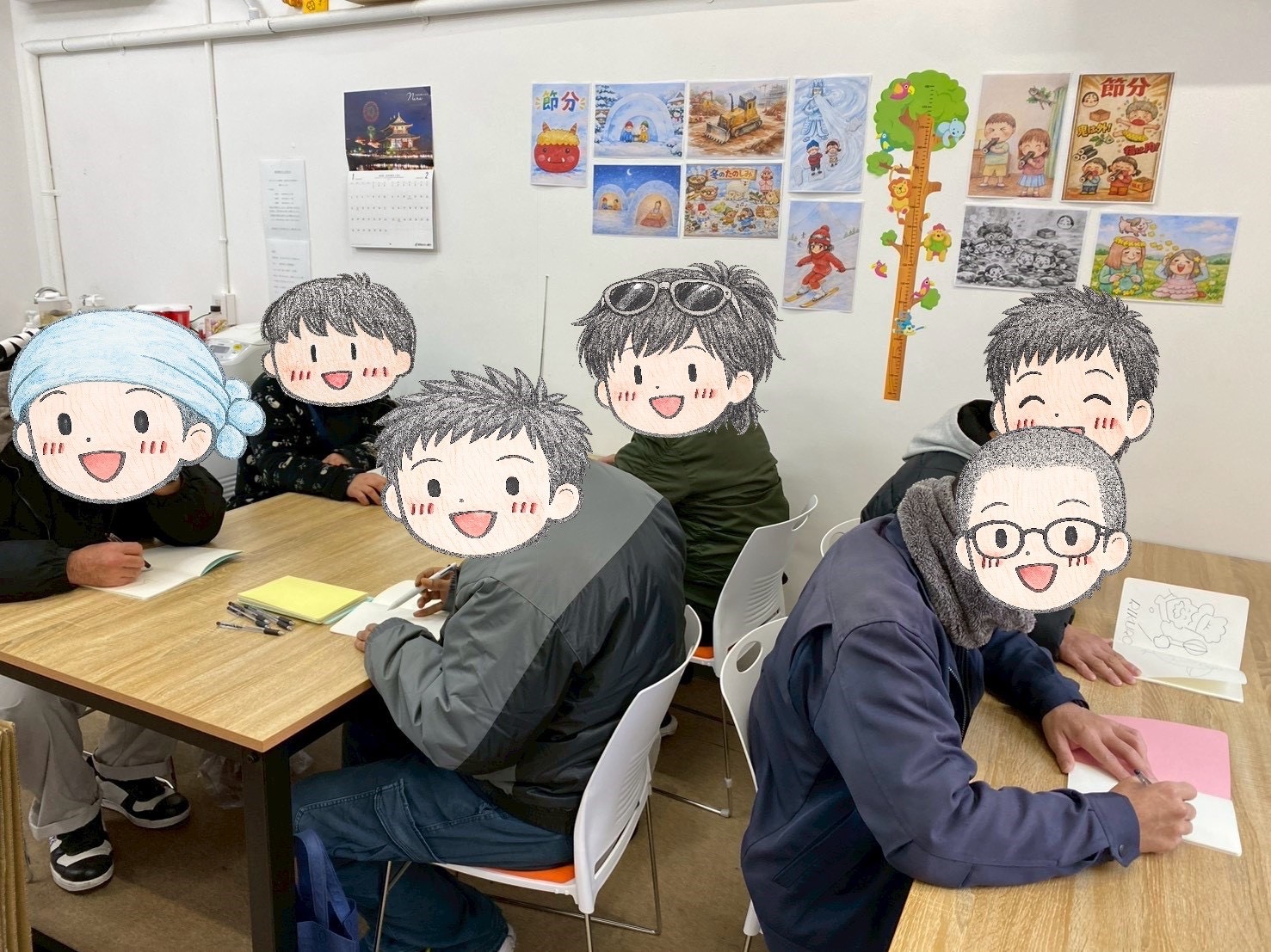 えびす事業所グラフィックアート1/31~2/6 成果報告 えびす事業所の利用者様の絵の技術は日に日に上がってきています。 クリエイターが加工しなくても良いぐらい上手いです。 中には僕には理解できない程の作品もありますが書いてくださった利用者様に聞くと 「何となくこんなのが描きたかった」 と仰っていました。 (なるほどとしか言いようがありませんでした💦) 今回は利用者様が似顔絵を書いてくださったので皆さんにそちらのスタンプで加工しております。 ほんとにそっくりです🤣