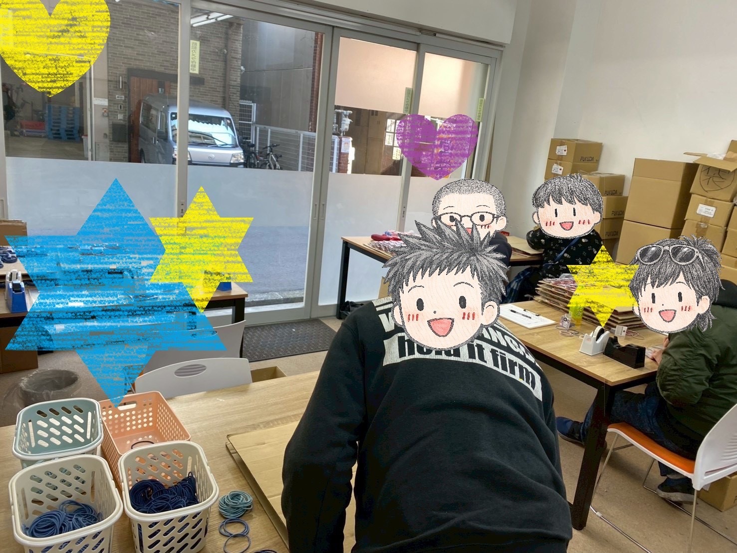 えびす事業所2/7~2/13 成果報告 えびす事業所はの作業はいつまでも「リングゴム」です💦 やってもやっても終わらない恐怖を感じています💦 しかし利用者様はもうリングゴムを制作するのは慣れすぎたみたいでピースするほどの余裕があるようです。 ここまで来ると逆にリングゴム以外の作業が始まると利用者様戸惑って作業にならないかもしれないですね。 今後どんな作業が来ても職員、利用者様共に全力で作業していきます‼️