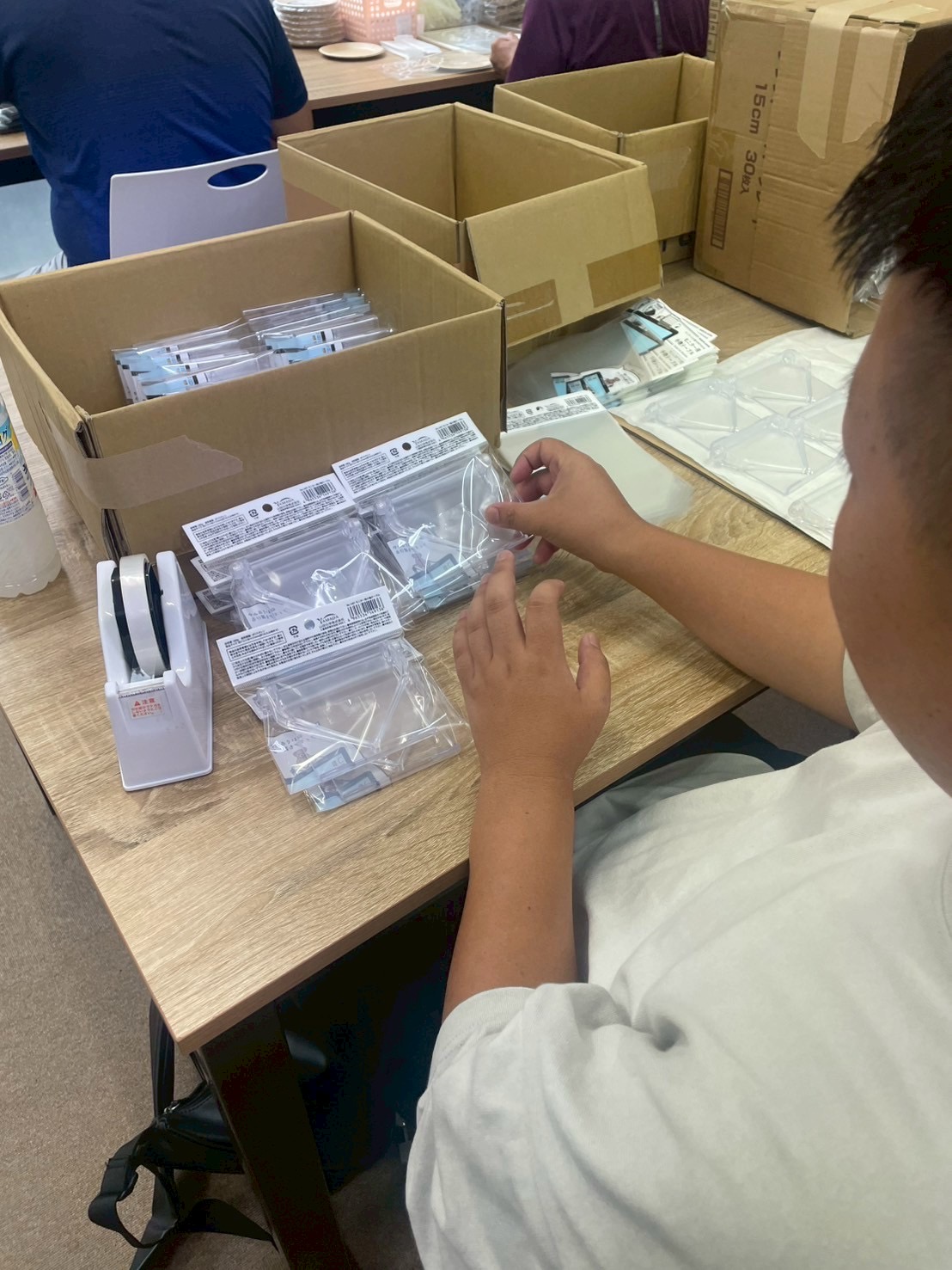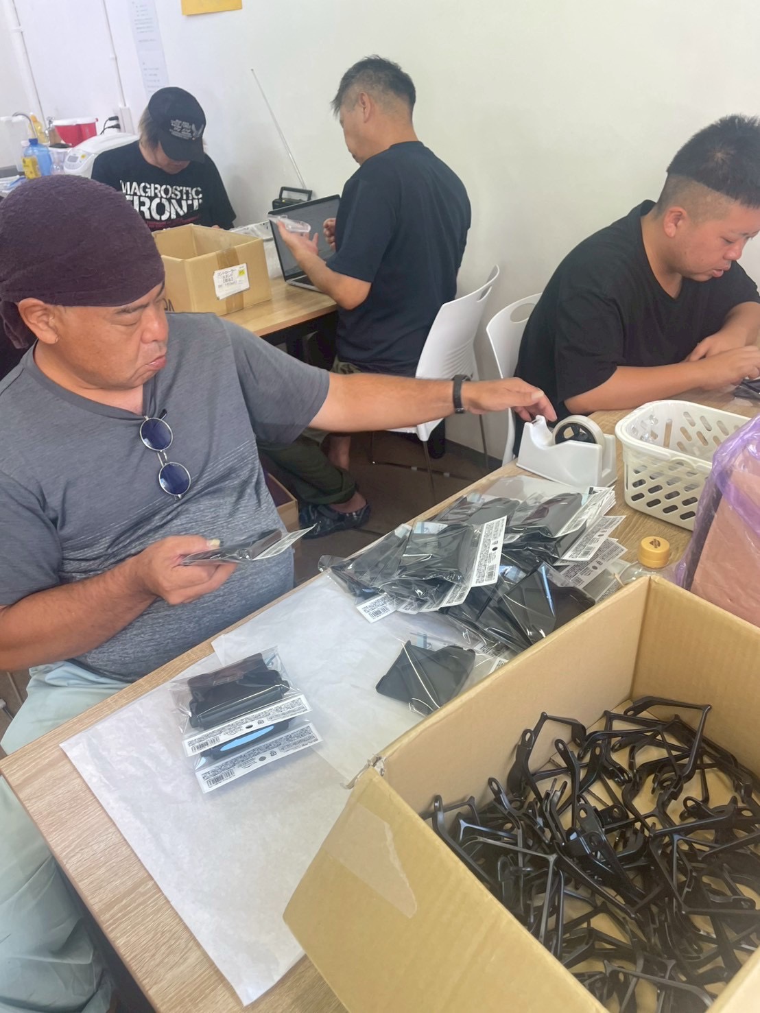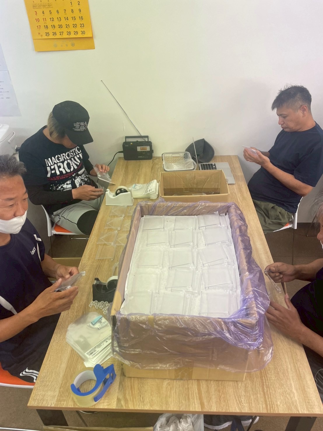 えびす事業所8/4~8/8今週の生活報告 今週は週初めはFreeLife様の「スマホスタンド」の制作をして頂きました。 スタンド自体の組み立ては簡単でしたが「バネ」を入れる工程で皆さん苦労されていました。 途中で利用者様が簡単にバネを入れる方法を見つけて下さり皆さんにやり方を教えてくださいました。 そのおかげで作業効率が上がり2日間で製品3箱分作ることが出来ました。 スマホスタンドは材料が無くなり火曜日で終了となりました。 水曜日からは同じくFreeLife様の「モニター用小物テーブル」の制作を開始しました。 色が「ブラック」と「クリア」の2色ありクリアの方が傷がつきやすく皆さんいつも以上に慎重かつ丁寧に作業してくださいました。 組み立てから袋詰め(最終の袋詰めは職員)までやって頂いたので3日間で7箱分作ることが出来ました。 モニター用小物テーブルはまだまだ有るので皆さん頑張りますと言ってくださいました。 職員一同も皆さんに負けないように頑張ります。 今週は火曜日に新しい仲間が増え最初は緊張して居られましたが周りの皆さんが積極的に声掛けしていただいたおかげですぐえびす事業所に慣れて貰えて良かったです。 皆さんには感謝です。
