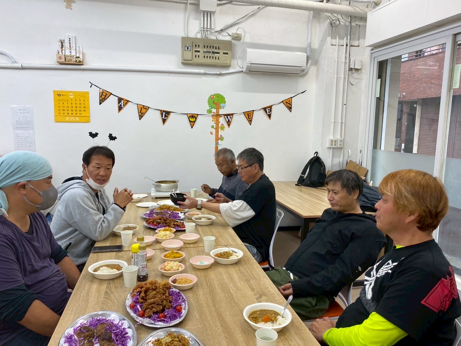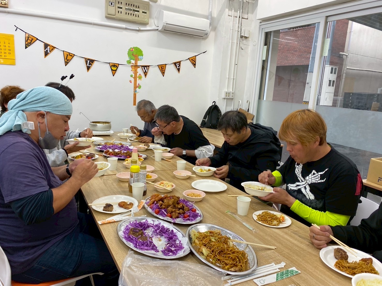 えびす事業所 えびす事業所10/25~10/31 成果報告 今週のえびす事業所の作業はFreelife様の新しい作業が始まりました。 今回の作業一言で言うならばとにかく「硬い」です 2つの部品を組み立てるだけなのですがそれをはめるのが硬くて皆さんがそれをはめる音が事業所内で響きわたっていました。 しかしえびす事業所の利用者様はコツを掴むのが早く この作業はあっという間に終わってしまいました💦 そしてまた新たな作業を始めたのですが今度はとにかく「重い」です!! 作業自体は簡単なのですが箱詰めした職員も持つ時に気合いを入れないといけないぐらい重いです 利用者様が出来た製品を持ってきてくださる時に 「これはいい筋トレになる」と仰っていました! それを聞いた職員は確かにそう考えると重くない事に気付き最初の頃に比べると不思議と軽く感じました。 今回の作業は数がかなりあるので利用者様と職員気合いを入れて頑張っていきます!! 10月31日この日は利用者様が待ちに待ったえびす事業所ハロウィンパーティーを開催しました!! 皆さんに1ヶ月前から告知し、皆さんが食べたいものを等をリサーチし当日皆さんに満足していただく為に職員も準備をし無事開催する事が出来ました!! 皆さん普段は作業に集中しているのであまり喋らないのですがこの日は皆さんわいわい、ガヤガヤして楽しそうで職員も嬉しくなり、準備を頑張って良かったと思いました。 在宅の方も来て頂き楽しんでいただき最後にみなさんで写真を撮りました!