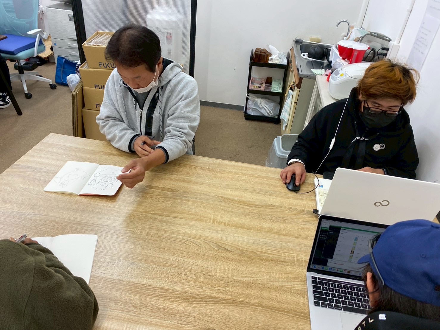 えびす事業所11/15~11/21 グラフィックアート成果報告 えびす事業所でグラフィックアートの原画を書いてくださってる皆さんはどんどん絵の技術が上がっているので職員は毎回驚かされます。 最初は 「描きたくない」 「絵が下手だから恥ずかしい」 と仰っていたのに今では率先して書いて頂いてます。 簡単な絵から始まって今では個性的な絵が出来上がっています😊 職員は個性的な絵が気に入ったみたいでその絵をずっと見ています(仕事はちゃんとしていただいています💦) これからクリスマス、お正月等のイベントも事もあるのでそちらを題材にした絵も書いてくれると嬉しいです またまた個性的な絵を載せさせていただきます (職員のお気に入りです😊)